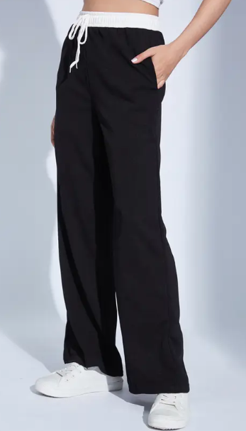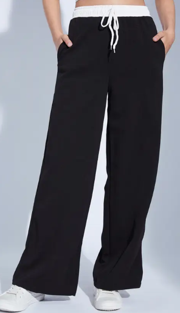 Women Relaxed Black Lycra Blend Trousers